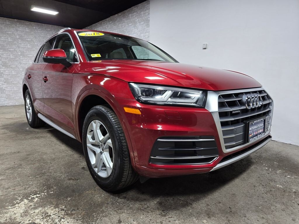 2018 Audi Q5 4D Sport Utility 2.0T quattro Matador Red Metallic 7-Speed Automatic S tronic 2.0L TFSI Atlas Beige w/Leather Seating Surfaces, 3-Step Heated Front Seats, Audi Side Assist w/Pre Sense Rear, Full LED Headlights, High Gloss Window Surrounds, Panoramic Sunroof w/Tilt/Slide & Power Sunshade, Parking System Plus (Front/Rear Acoustic Sensors), Premium Plus Package, Rear Cross Traffic Assist, Stainless Steel Door Sills, Vehicle Exit Assist. 2018 Audi Q5 2.0T quattro quattro