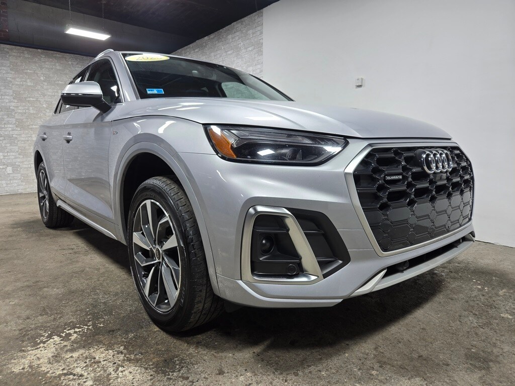 2023 Audi Q5 4D Sport Utility 45 S line Premium Plus quattro Florett Silver Metallic 7-Speed Automatic S tronic 2.0L Turbocharged Black w/Leather Seating Surfaces, ABS brakes, Alloy wheels, Audi Active Lane Assist, Audi Advanced Key, Audi Virtual Cockpit Plus, Auto-Dimming Power Folding Exterior Mirrors, Bang & Olufsen Sound System w/3D Sound, Compass, Convenience Package, Driver Seat Memory, Electronic Stability Control, Front dual zone A/C, Hands-On Detection Steering Wheel, Heated door mirrors, Heated front seats, Heated Steering Wheel, Illuminated entry, Leatherette Covered Center Console & Door Armrests, Low tire pressure warning, Panoramic Sunroof, Power Adjustable Steering Column, Power Liftgate, Premium Plus Package, Remote keyless entry, SiriusXM w/360L, Top View Camera System, Traction control, Traffic Jam Assist, Wheels: 19" 5-Double-Arm Design Bi-Color Finish. 2023 Audi Q5 45 S line Premium Plus quattro quattro
